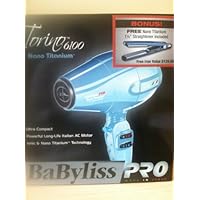 Babyliss Nano Titanium Torino 6100 Hair Dryer Bonus Free Nano Titanium Straightener Included, Blue,